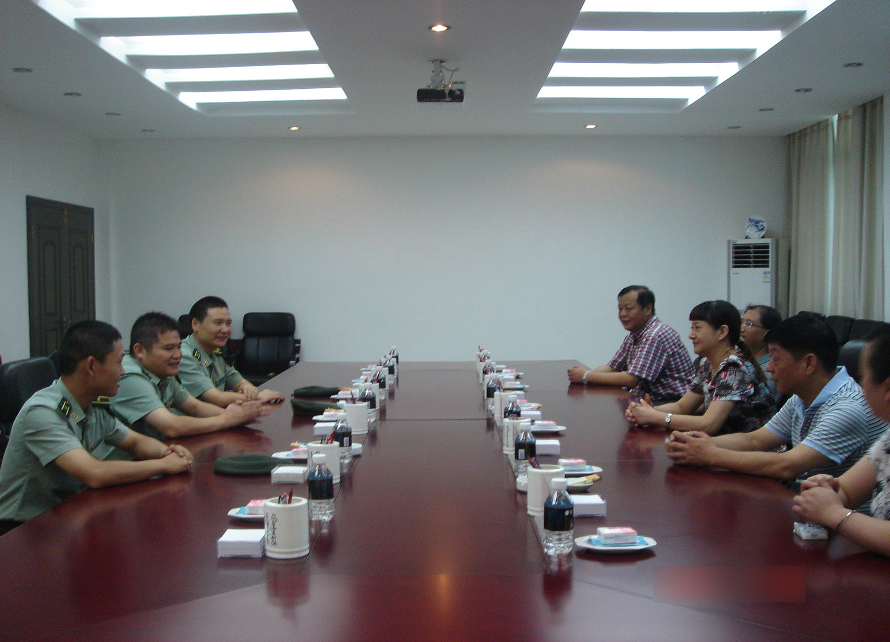 今年是中国人民解放军建军86周年。在“八一”建军节前夕,市粮食局党委书记、局长滕晓华和分管领导江民干副局长带领市军粮供应等有关部门,冒着酷暑前往驻景二炮某部队和消防、武警部队进行慰问,为驻市部队送上节日的祝贺。还送去了绿豆、西瓜、饮品等防暑物品,以向最可爱的人表达最真挚的慰问。并与部队官兵进行了座谈交流,畅叙友谊,共商军粮供应大计。市粮食局滕晓华局长介绍了当前粮食形势和我市军粮供应工作的基本情况,就做好新形势下的军粮供应工作以及服务军队建设、“双拥”工作,诚恳征求了部队官兵的意见和建议。驻市部队官兵称赞粮食部门的军粮供应质量稳定,服务到位,并对市粮食局长期以来在军粮供应和支持部队建设上卓越成效的工作表示十分满意,给予了充分肯定。整个座谈洋溢着军民鱼水情深的和谐氛围,双方领导共同表示要进一步加强军民共建,互相支持,加深友谊,同呼吸共命运,把交流合作工作提高到一个新的水平,共同为国防建设和建设和谐魅力瓷都做出积极贡献。